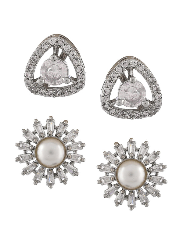 Shoshaa Set of 2 Silver-Toned Ad Stones Contemporary Studs Earrings - Distacart