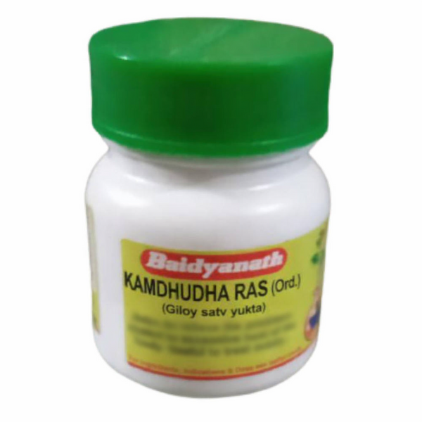Baidyanath Kamdudha Ras is an Ayurvedic formulation made from a blend of herbal and mineral ingredients. It is traditionally used in Ayurvedic practices, primarily in North India.