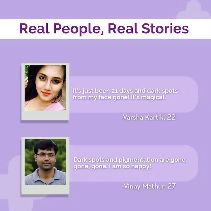 • Vitamin C: Regulates pigmentation levels leaving skin evenly toned. Protects & repairs skin cells. It provides visible anti-aging benefits & brightens skin.