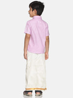 Sethukrishna Boys Pink & White Solid Shirt with Veshti Set - 2-3Y