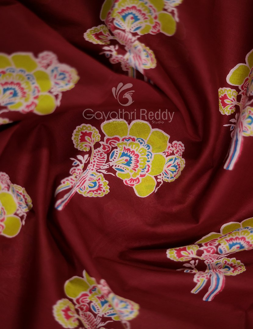 Block Print Maroon Coloured Mulmul Cotton Saree By Gayathri Reddy Designer Studio
