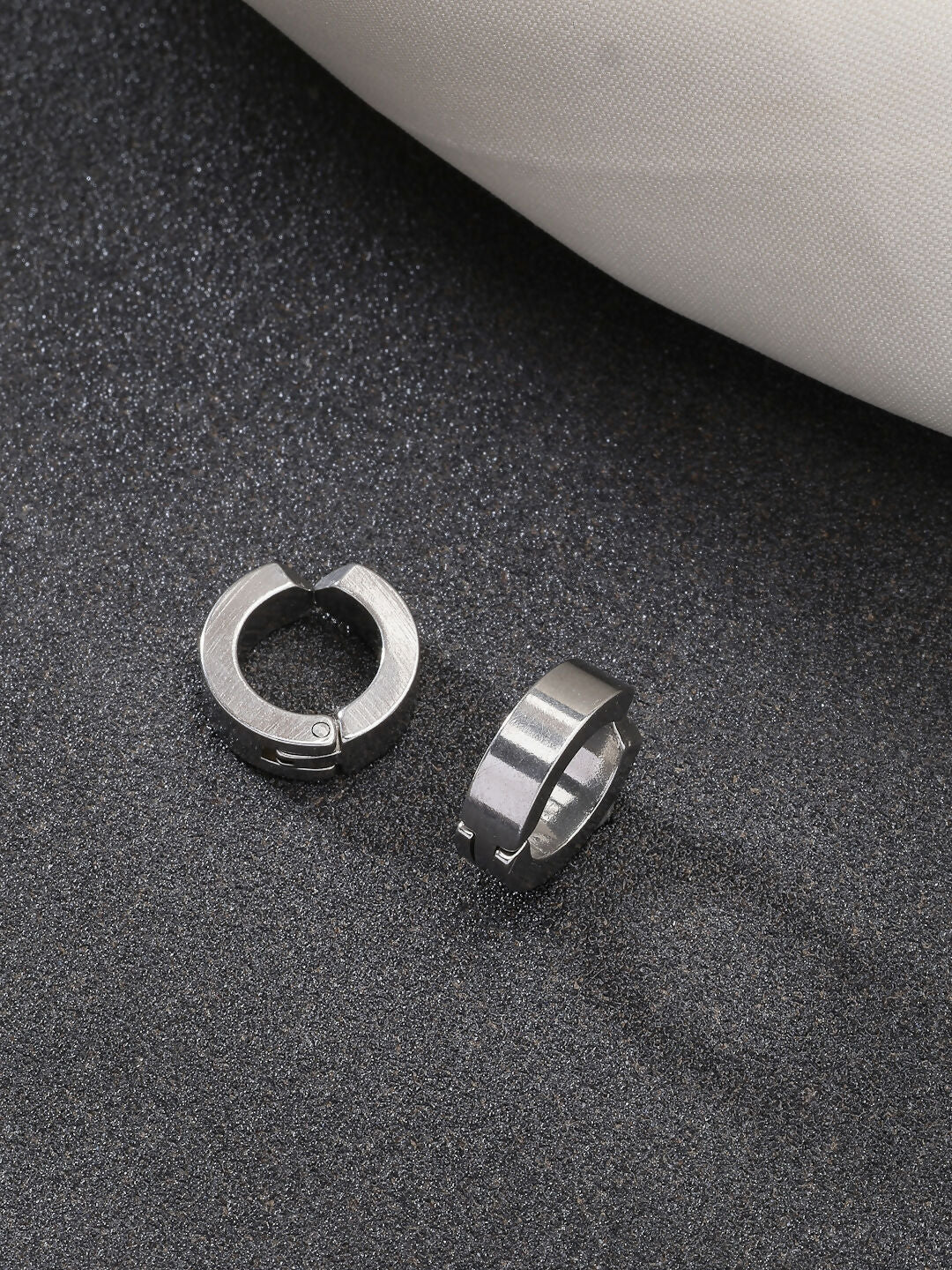 NVR Men's Set of 2 Multicolor Rhodium-Plated Stainless Steel Hoop Earrings - Distacart