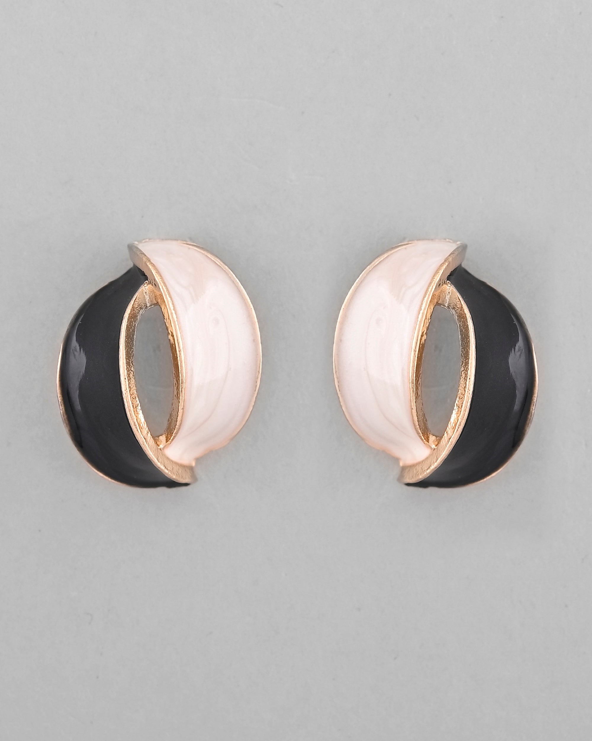 VOJ Gold-Polished Korean Style Black And White Studs Earrings