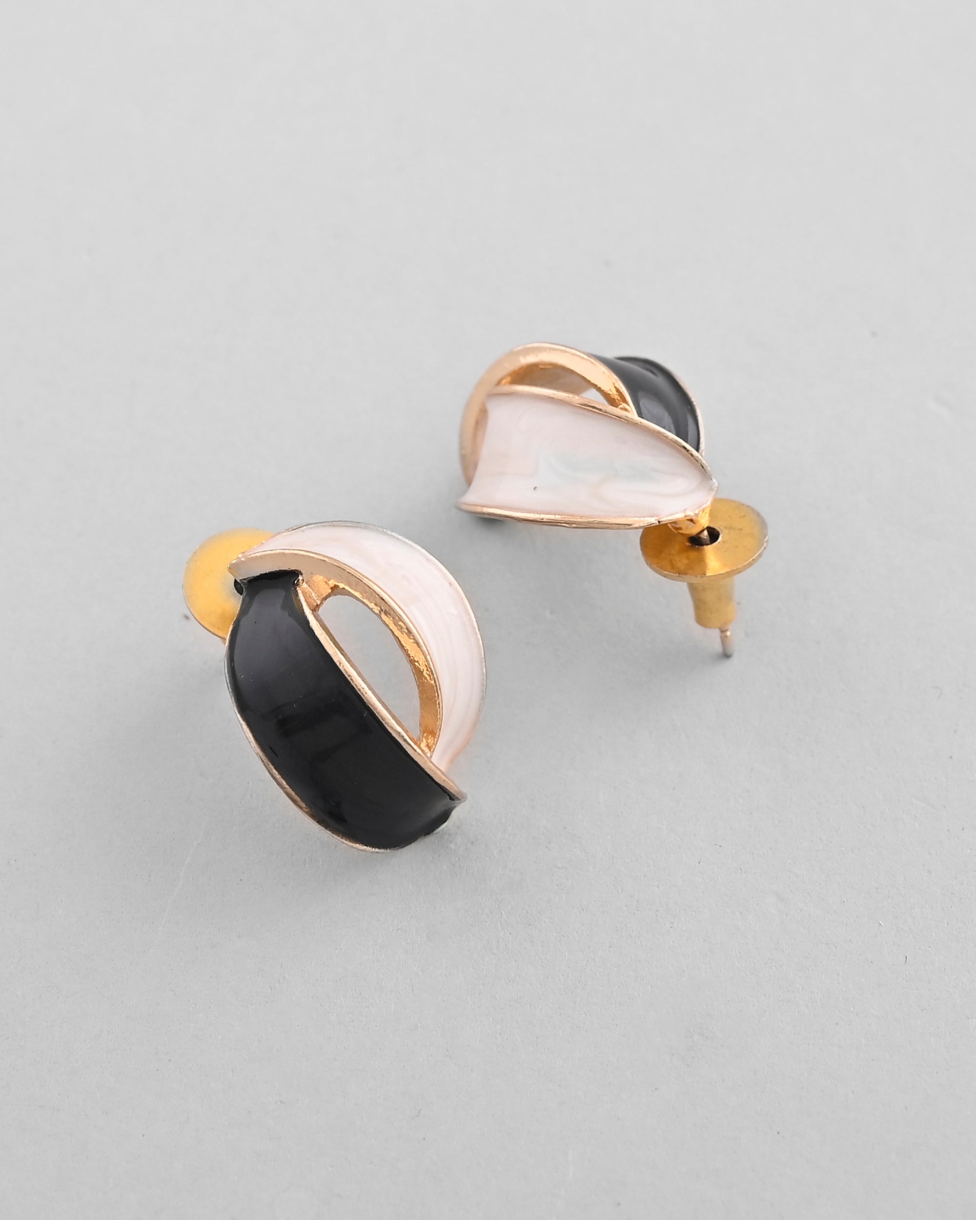 VOJ Gold-Polished Korean Style Black And White Studs Earrings - Distacart