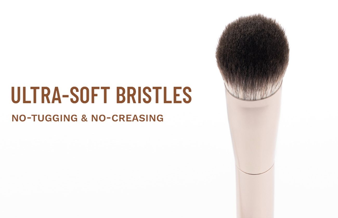 • Set Under Eyes: Gently press the brush under your eyes, focusing on areas that need setting. Use soft dabbing motions for a smooth finish.