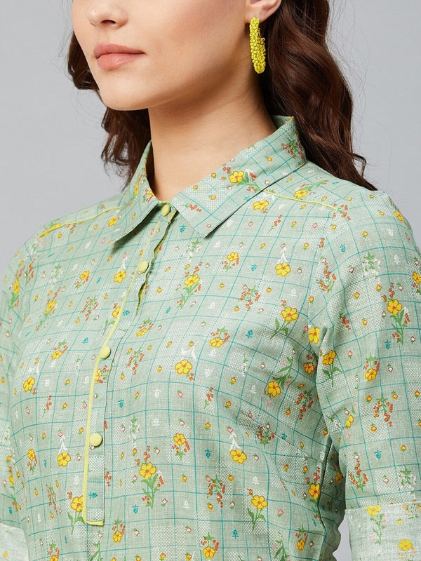 AURELIA Women Green & Yellow Floral Print Shirt Dress - Distacart
