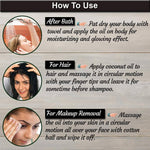 • Coconut oil is an excellent massage oil that acts as an effective moisturizer on all types of skin, including dry skin.