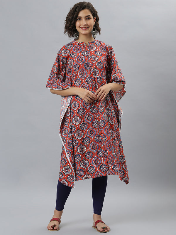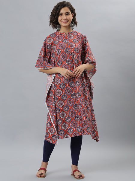 Janasya Women's Orange Cotton Floral Print Casual Kaftan Kurta Color: Orange Fabric: Cotton Work/Pattern: Floral Print Occasion: Casual S...