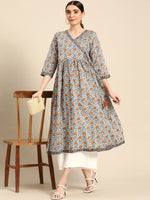 Janasya Women's White Cotton Floral Printed Casual Angrakha Kurta Color: White Fabric: Cotton Work/Pattern: Floral Printed Occasion: Casual...