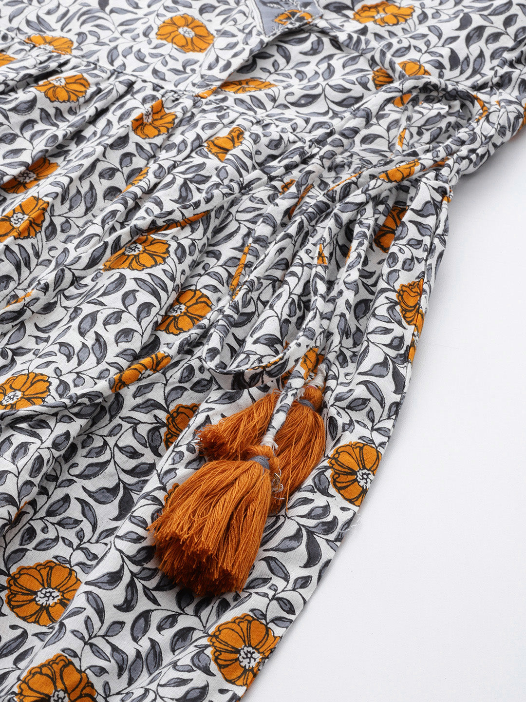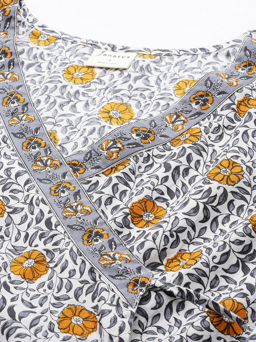 Janasya Women's White Cotton Floral Printed Casual Angrakha Kurta - Distacart