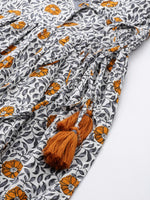 Janasya Women's White Cotton Floral Printed Casual Angrakha Kurta