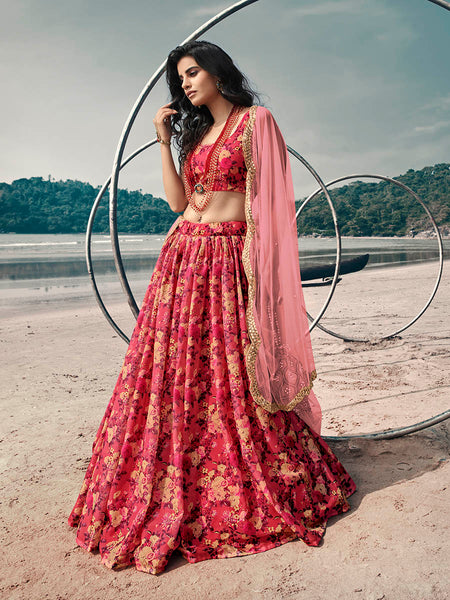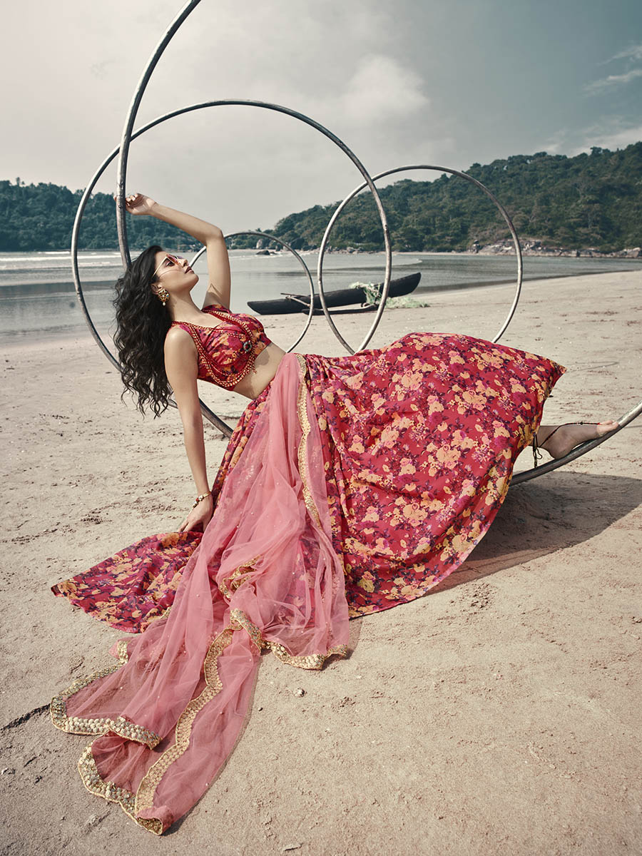 Myra Gajeri Red Organza Printed Lehenga - Distacart