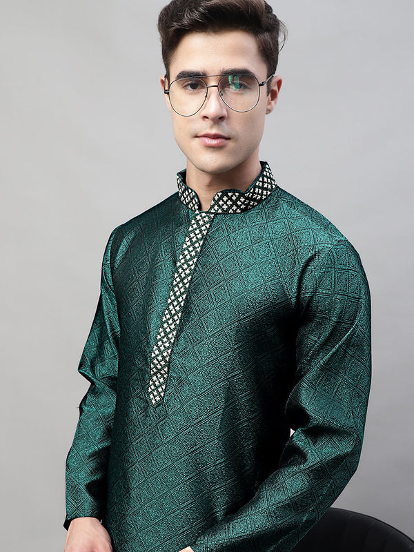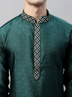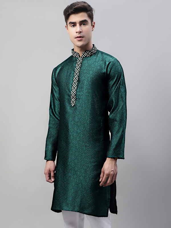 Jompers Men's Olive Green Jacquard Silk Collar Embroidered Kurta - Distacart