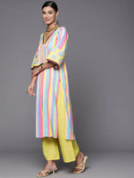 Ahalyaa Women Neon Green & Blue Candy Striped Kurta with Palazzos