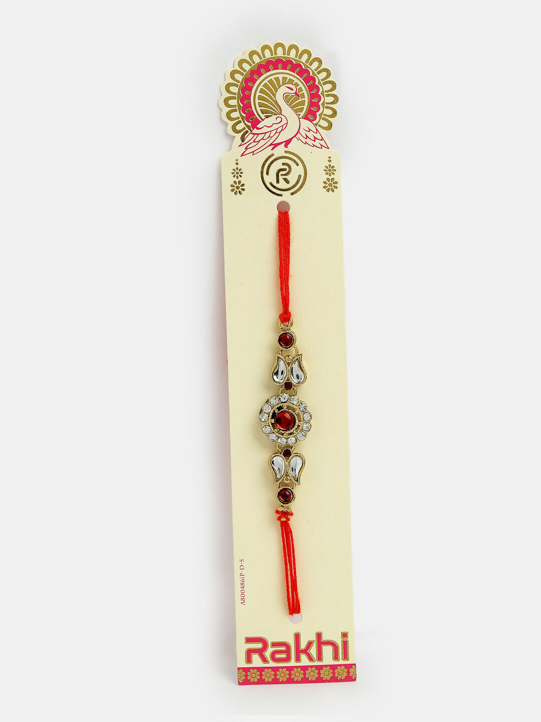 NVR Men Gold-Toned Stone-Studded Rakhi With Roli Chawal & Chocolate