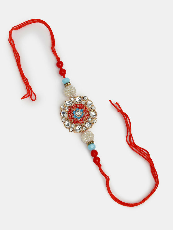 • Style Note: Celebrate the bond of love and protection with the NVR Women & Men Set of 2 Red & Stone-Studded Bhaiya Bhabhi Rakhi. These elegant rakhis are adorned with shimmering stones, symbolizing strength and affection. Perfect for both your brother and sister-in-law, this set includes traditional Chocolate, roli chawal, chandan, and mishri, ensuring a heartfelt and authentic ritual. Embrace tradition and honor your bond with these beautiful rakhis, making Raksha Bandhan truly special for your loved ones.