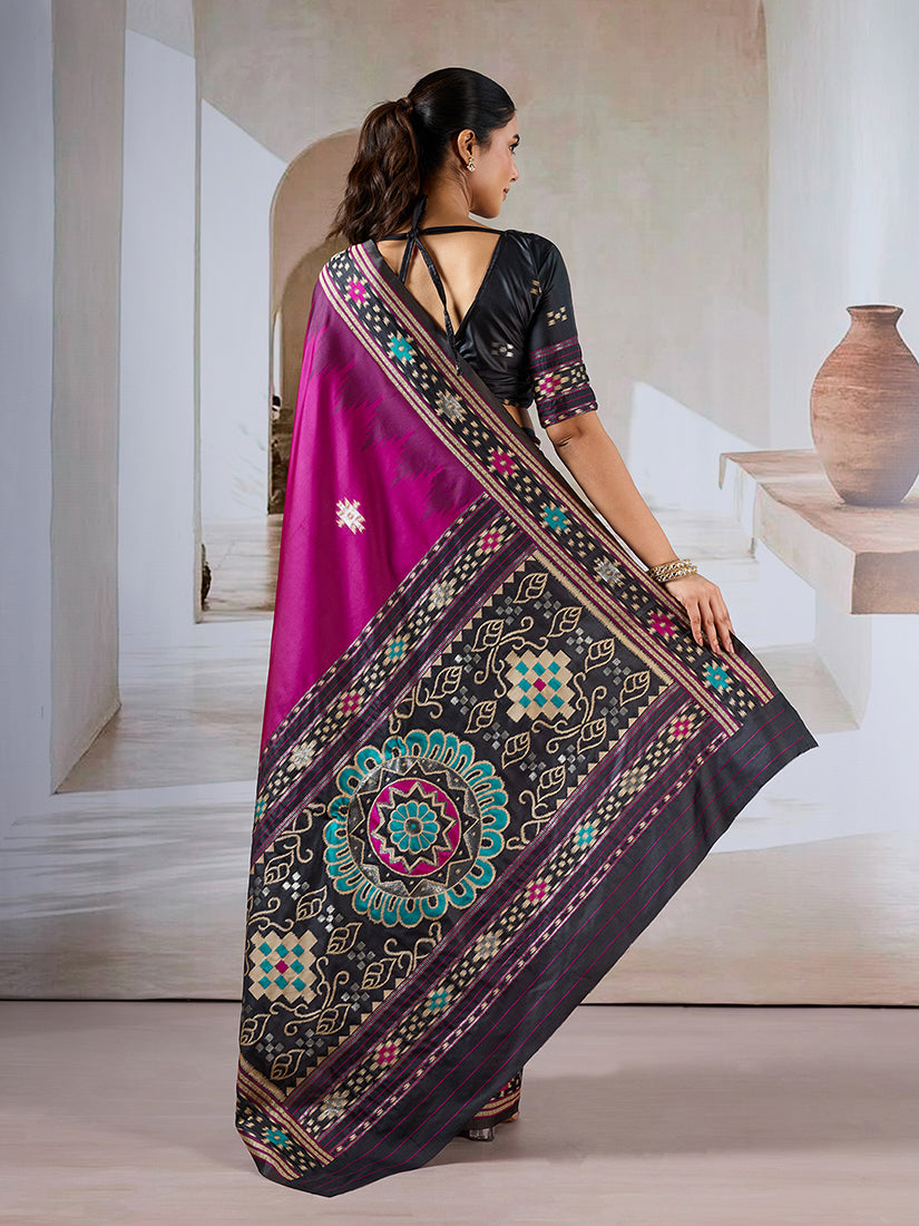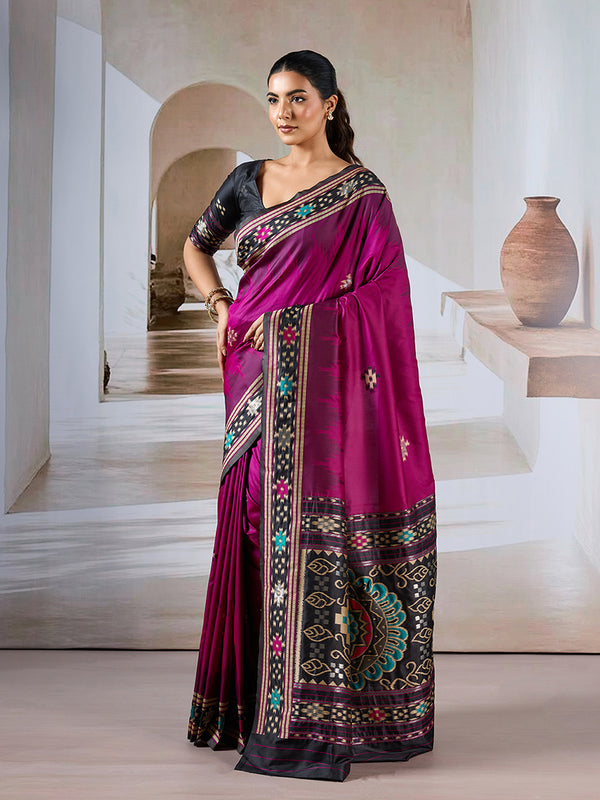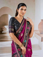 Monjolika Fashion Dark Magenta Weaving Handloom Silk Blend Designer Saree - Free Size