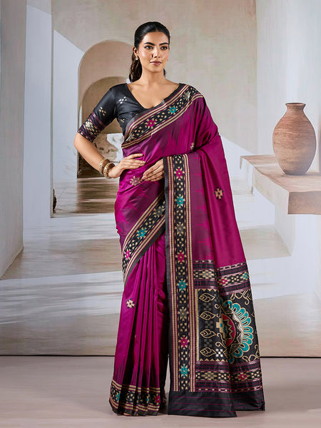 Monjolika Fashion Dark Magenta Weaving Handloom Silk Blend Designer Saree