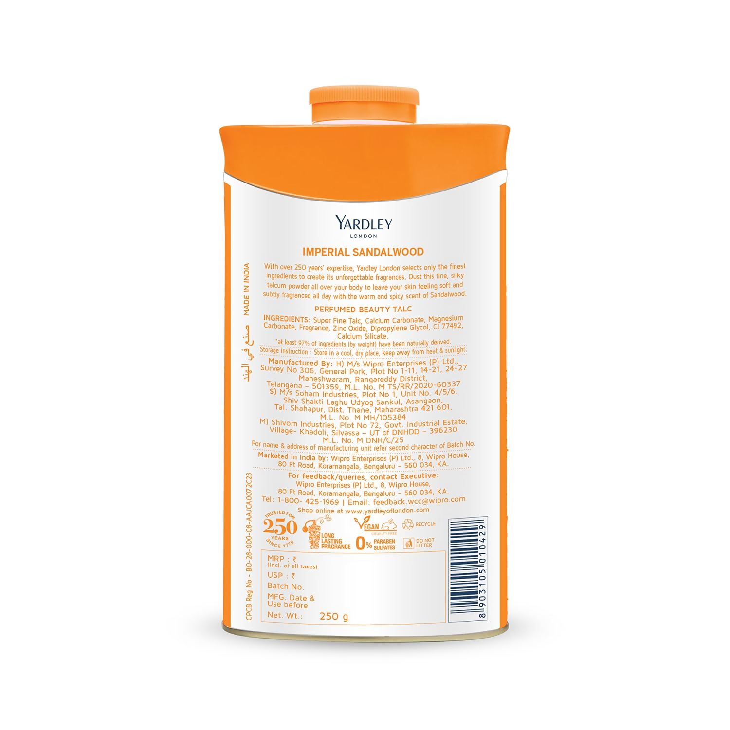Yardley London Imperial Sandalwood Talc for Women has a rich, woody fragrance with a soft and fine texture. It leaves a smooth and fresh feeling on the skin, making it ideal for daily use. This talc adds a touch of elegance and warmth to your routine.