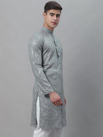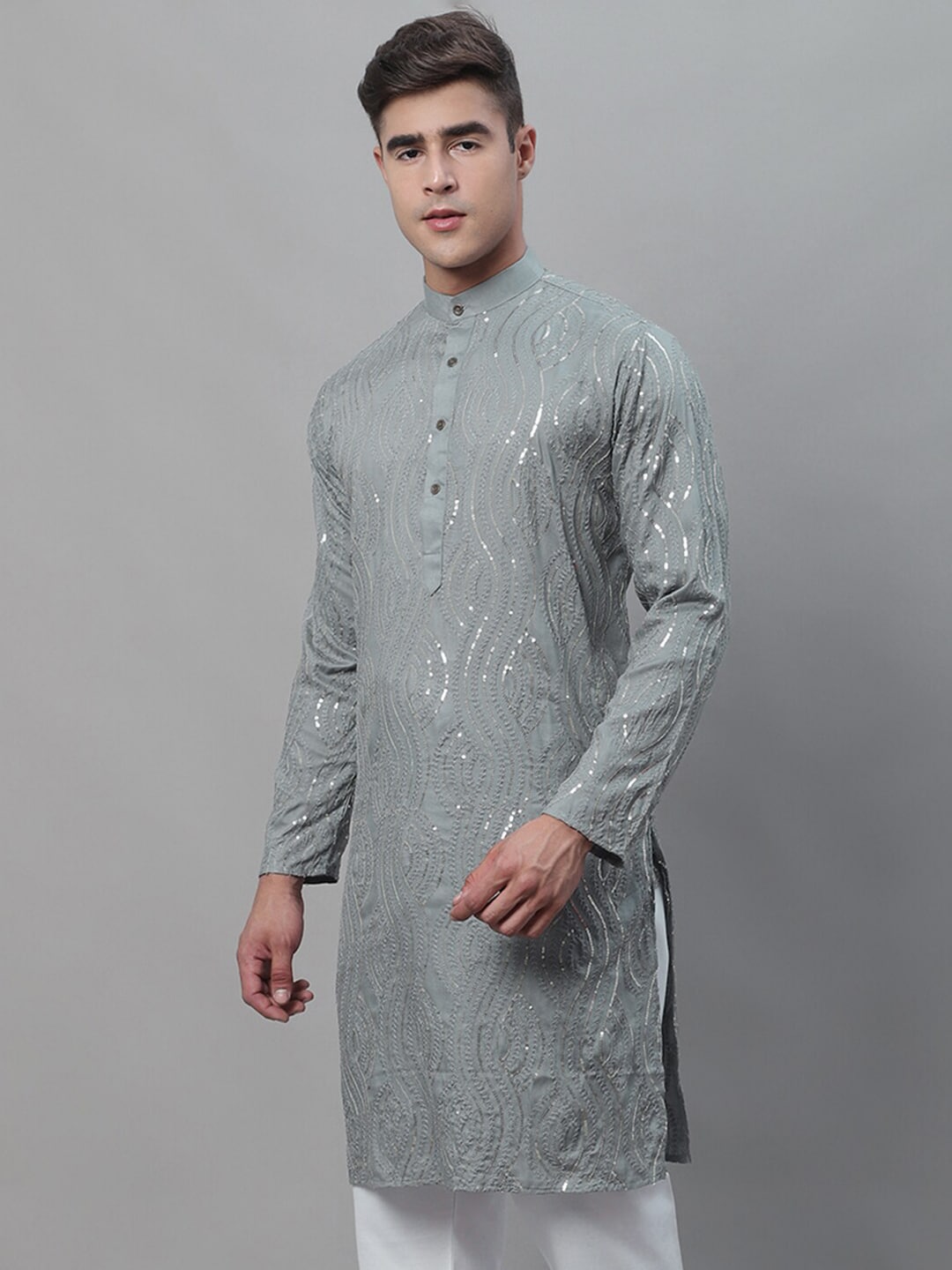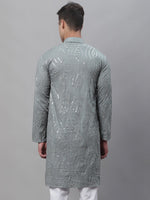 Sojanya Ethnic Motif Embroidered Sequined Work Pure Cotton Kurta Product Details Colour: grey Ethnic motif embroidered Mandarin collar Long, re...
