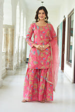Teeya Creation Multi Color Chinnon Silk With Heavy Embroidery With Positiona Print Fully Stitched Sharara SuitGraceful ready-to-wear ensemble craft...