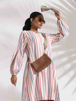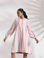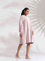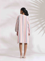 trueBrowns Off-White Cotton Multi Stripe Short Dress