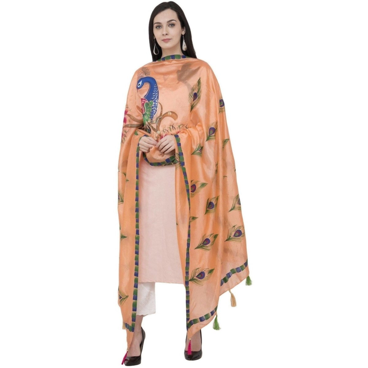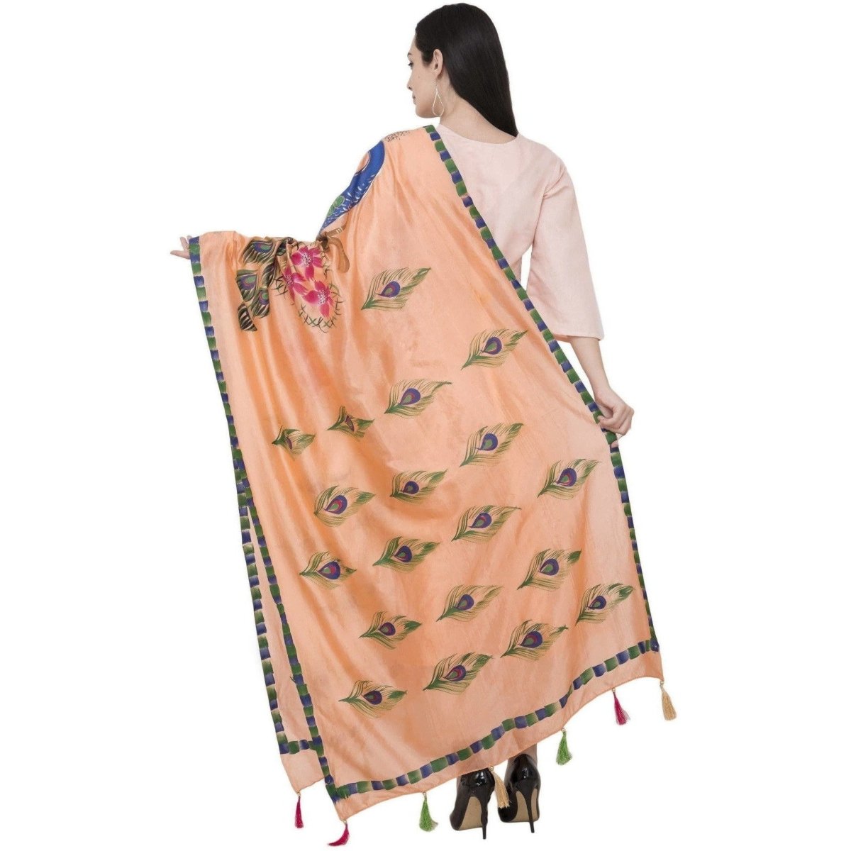 A R Silk Silk Peacock Multi Fancy Dupatta Color Peach Dupatta or Chunni: