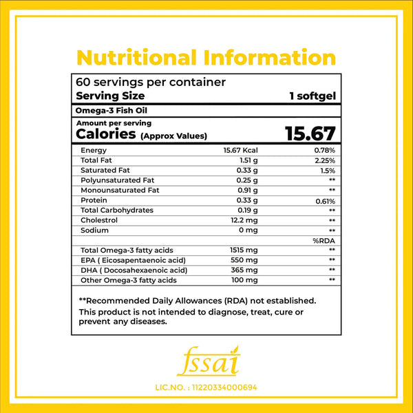 Boldfit Omega-3 Fish Oil Triple Strength SoftgelsIngredients:Fish OilDirections to Use:Take 1 soft gel daily after lunch or dinner. Do not consume ...