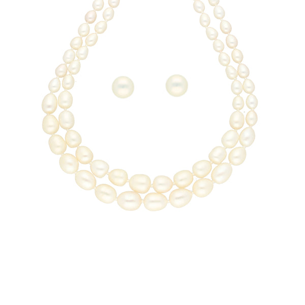 J Pearls 2 Lines Oval Pearl Necklace - Real Pearl Jewelry