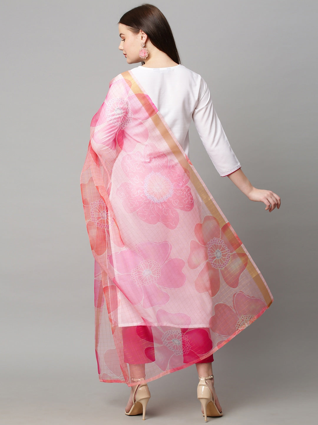 Kalini Women White Floral Yoke Design Kurta with Trousers & Dupatta - XL