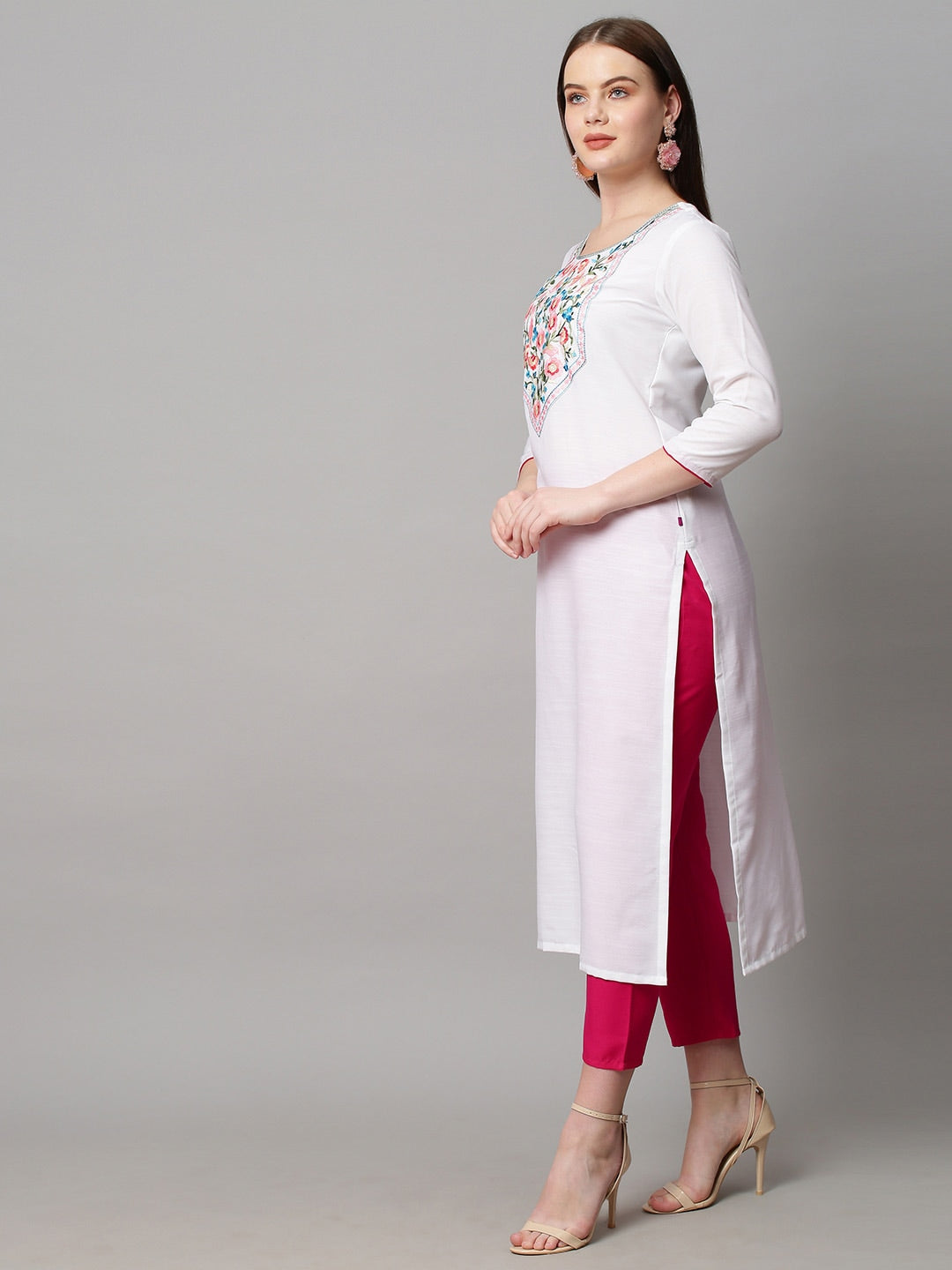 Kalini Women White Floral Yoke Design Kurta with Trousers & Dupatta - Distacart