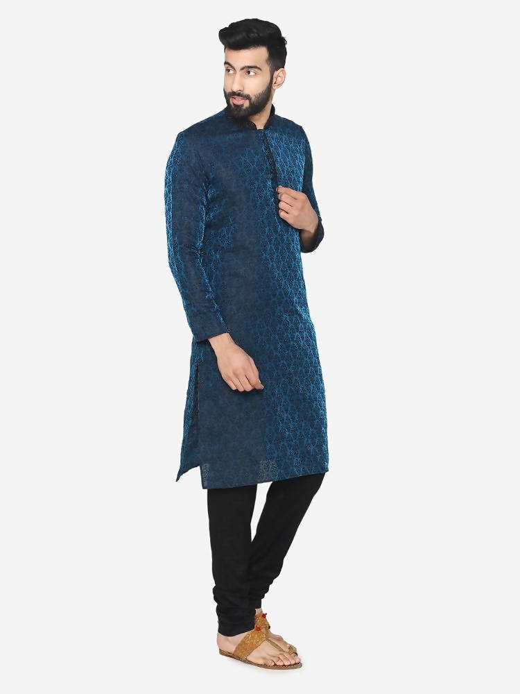 Manyavar Men Blue Self Design Kurta with Churidar - S