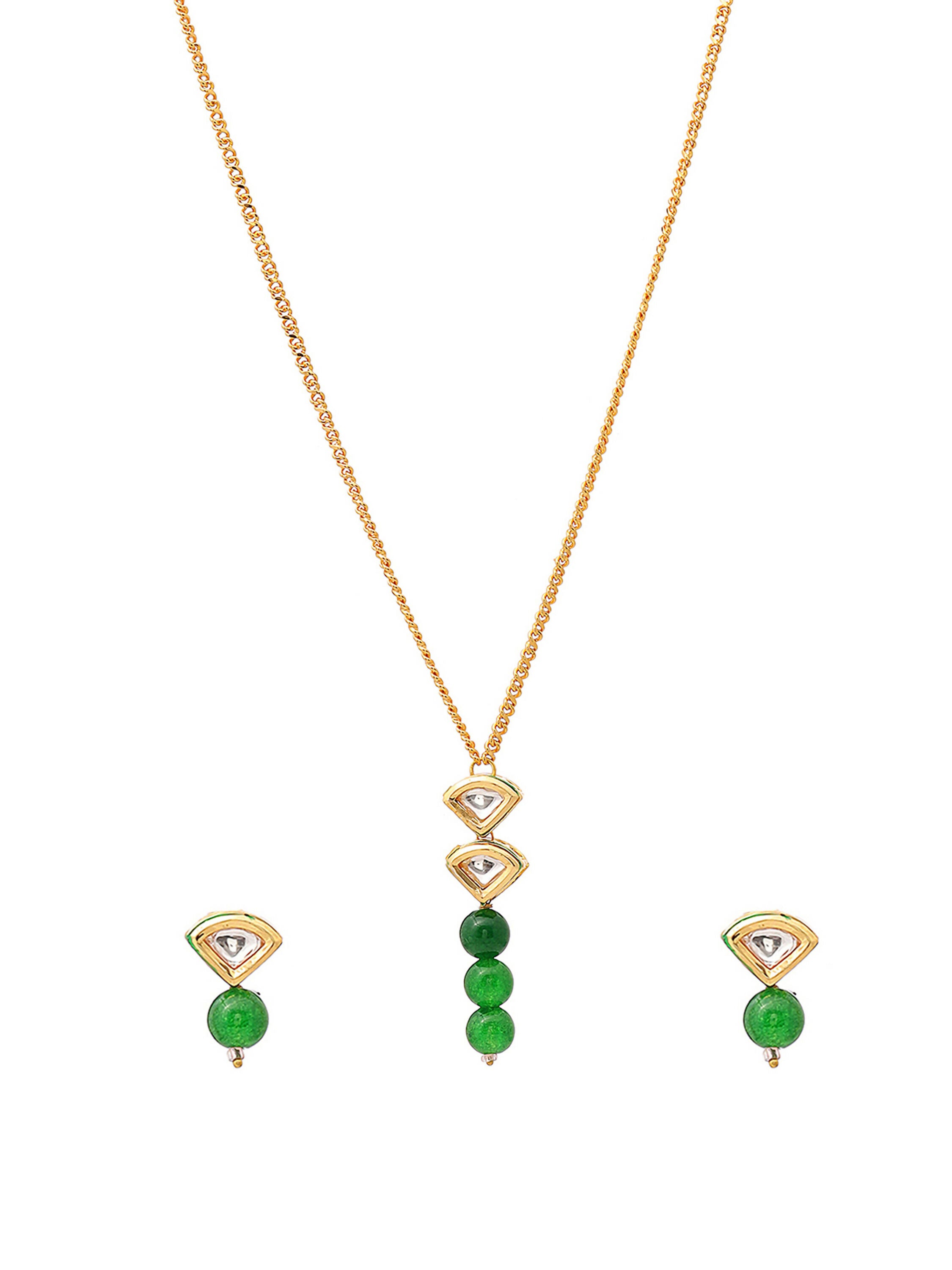 Ruby Raang Kundan and Green Stone Necklace with Studs - Onesize