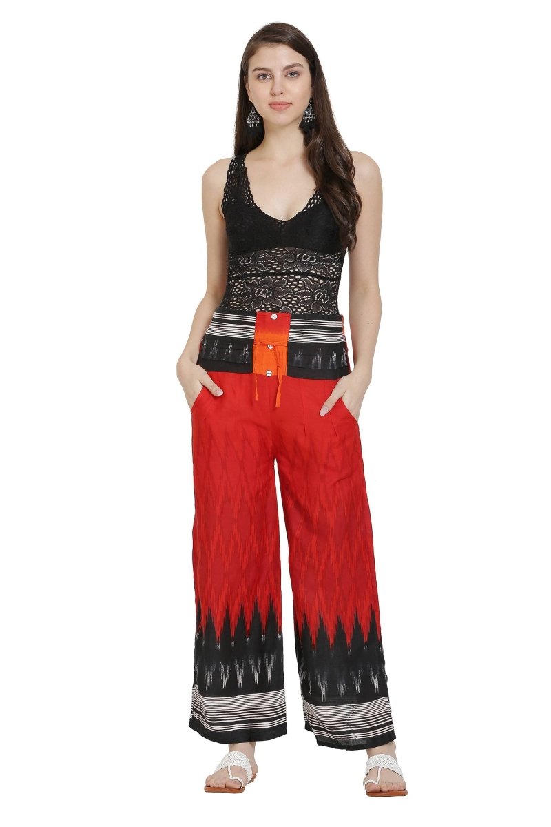 It is made of Rayon. Beautiful Flower Fix Print Palazzo.A use Of Half Elastic in Waist. Two Dori and this Palazzo Three small Button Top Centre and Two Side Pockets.Perfect finishing and good quality Palazzo. Light weight and comfortable wearing.Keep your style breezy and chic in these palazzos. Team this pair with a solid tee and heels when running errands.