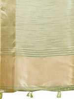 Astita Elegant Gold Mint Green Organza Saree with Zari Border | Party Wear Lightweight Saree with Blouse for Women - Default Title