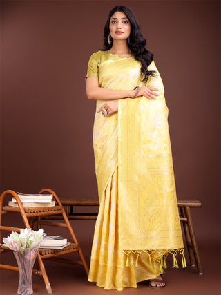 Astita Stylish Yellow Linen Cotton Saree with Woven Design - Lightweight Elegance for Everyday Grace