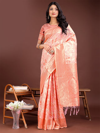 Astita Stylish Peach Linen Cotton Saree with Woven Design - Lightweight Elegance for Everyday Grace