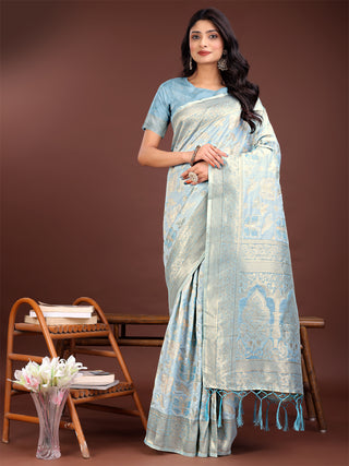Astita Stylish Sky Blue Linen Cotton Saree with Woven Design - Lightweight Elegance for Everyday Grace