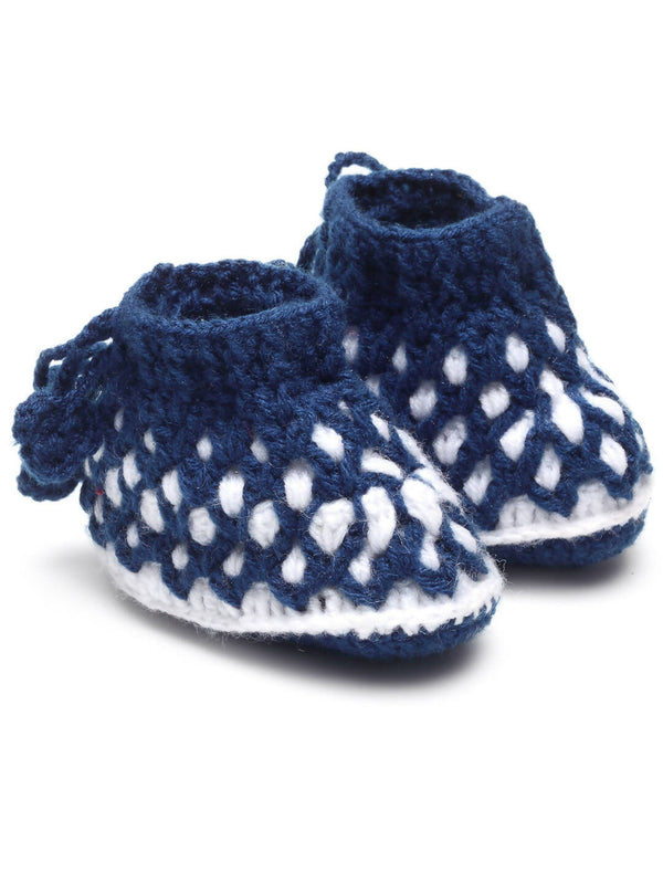 Chutput Kids Woollen Hand Knitted Self Desgin Booties - Blue - Distacart