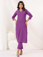 Janasya Light Cotton Solid Straight Kurta Set - XS