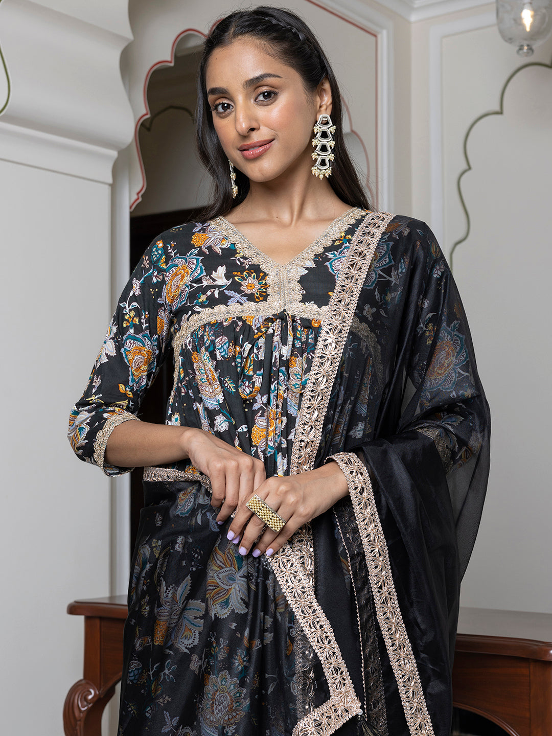Janasya Women's Black Cotton Embellished Festive Empire Kurta Set Top color: Black Top Fabric: Cotton Top Pattern: Embellished Occasion: Festiv...