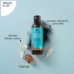 • Refresh your face with our powerful yet effective and gentle cleanser. Crafted with Volcanic lava ash, Yugdugu, and White lotus, the non-foaming cleanser doesn't strip off the skin of its protective moisture barrier or disturb the natural pH, thus maintaining its integrity and youth. Volcanic lava ash is one of nature's most powerful purifiers. It penetrates deep into the skin and gently pulls out dust, grime, and excess sebum, like a magnet, cleaning the pores. It also remineralizes the skin to prevent breakouts and heals the skin from the inside out. Yugdugu dries out any active acne and controls redness. It also removes dead skin cells to reveal fresh and healthy-looking skin. White lotus further purifies, soothes, and calms the skin to reveal the glow within. Rediscover your baby-soft, bouncy, and clear skin once again