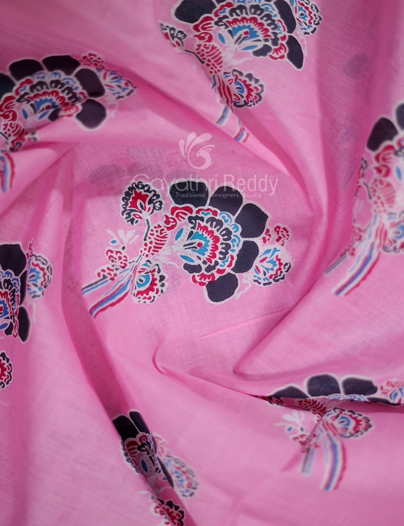 Saree Colour : Baby pink colour combination with block print design all over the saree.