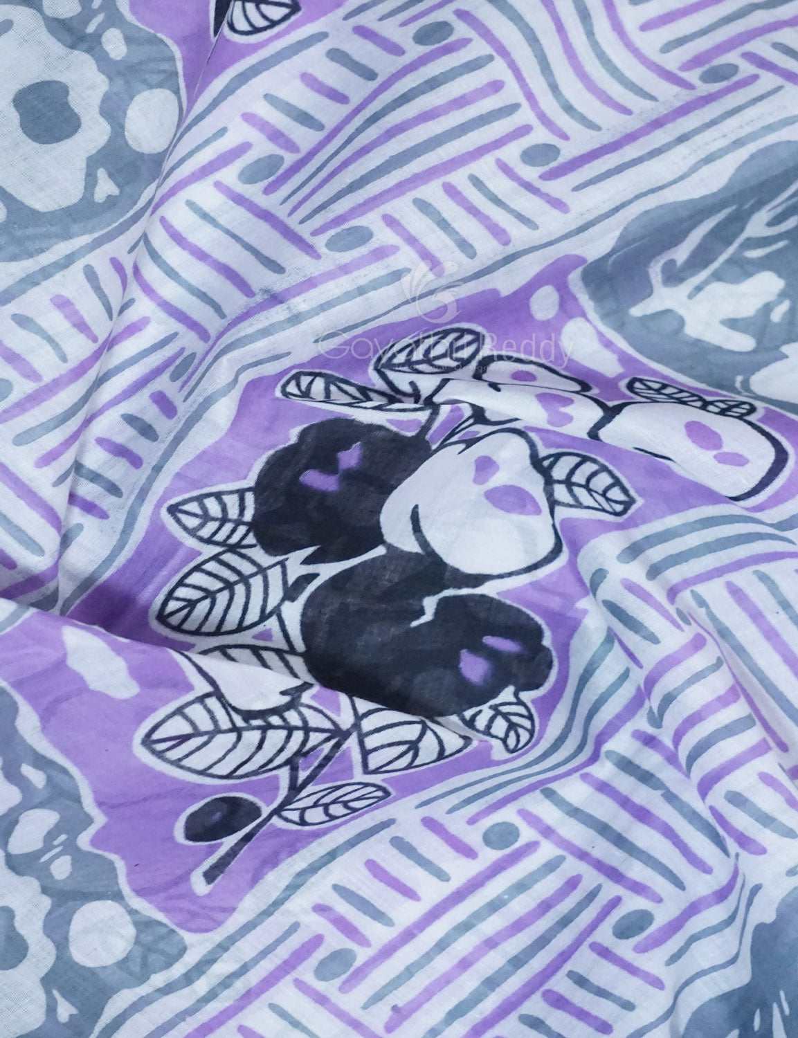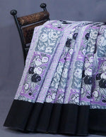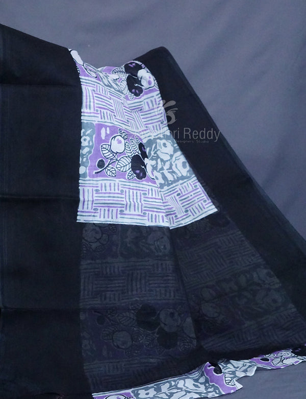 Saree Colour : Shades of lavender and black colour combination with block print floral design all over the saree.
