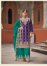 Aarshi Fashions Dark Blue Heavy Chinon Palazzo Salwar Suit