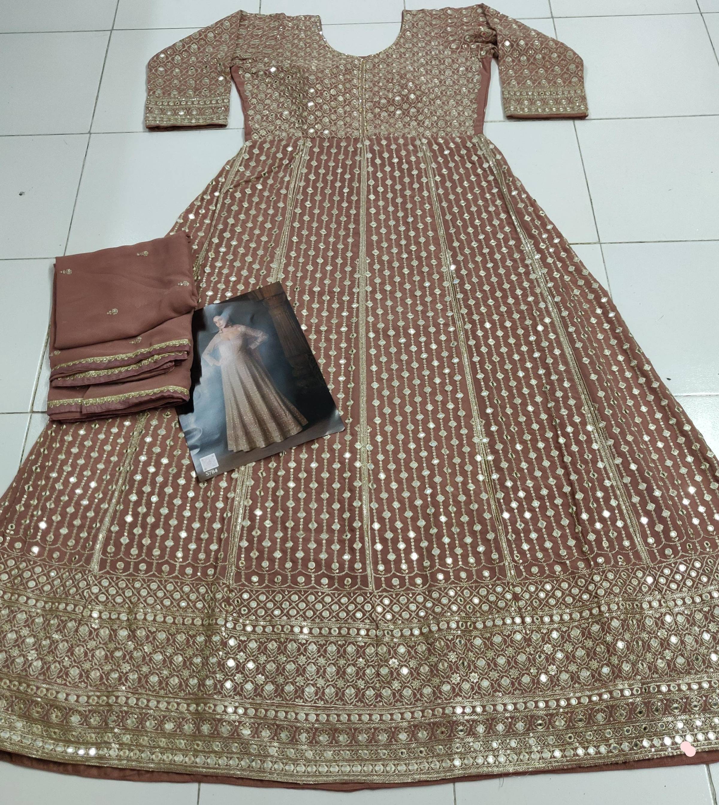 Aarshi Fashions Real Georgette Heavy Embroidery Wedding GownProduct Details Package Details : 1 Top::1 Dupatta: Kameez Length : 54 Color: Beige Fab...