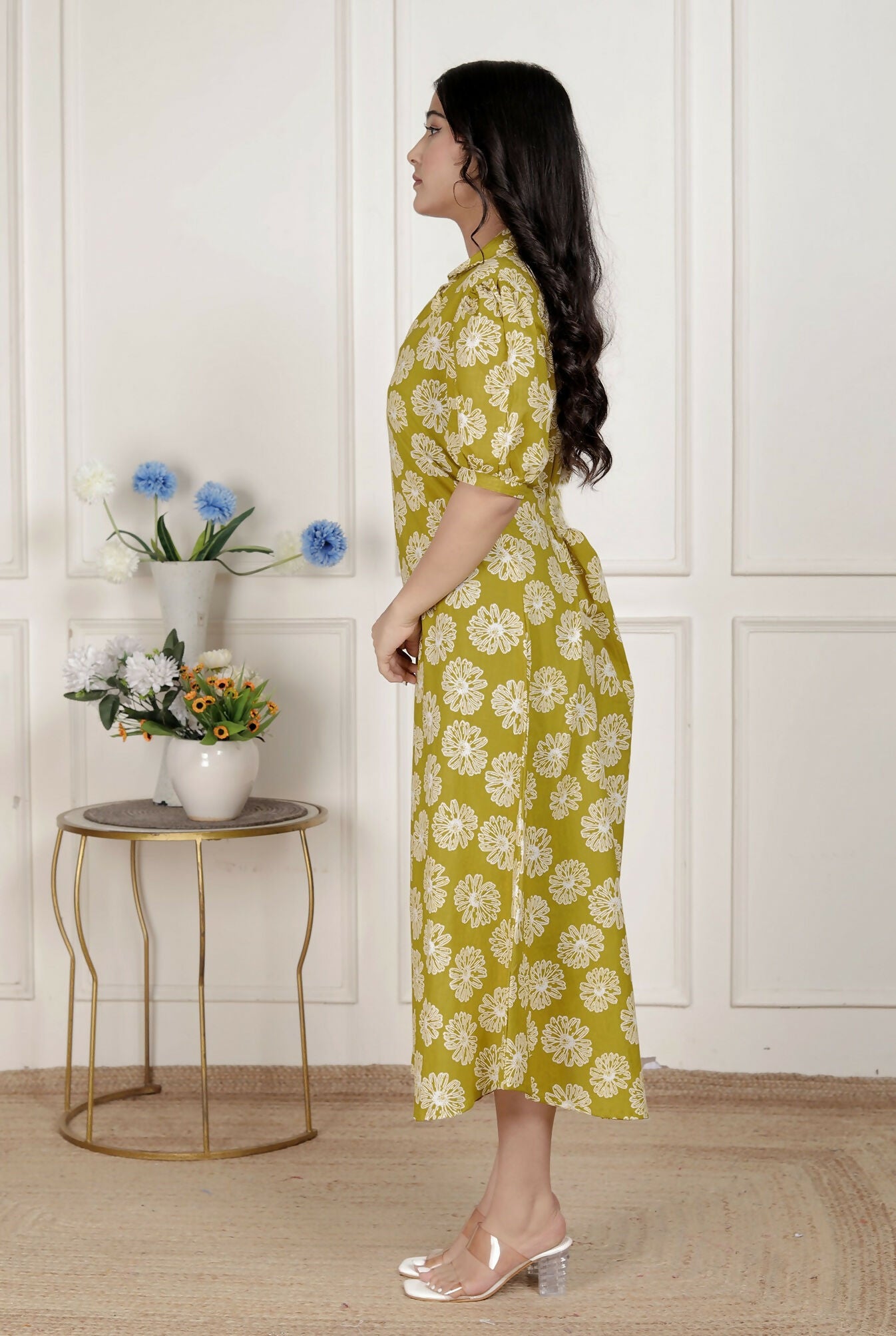 Miravan Women'S Yellow Printed Puff Sleeve Floral Maxi Party DressAbout The productCapture the essence of joy and confidence with our stunning yell...