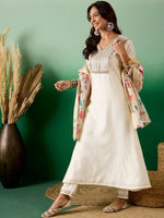 Sangria Off White Floral Embroidered Zari Sequence A-Line Kurta With Trouser & Dupatta