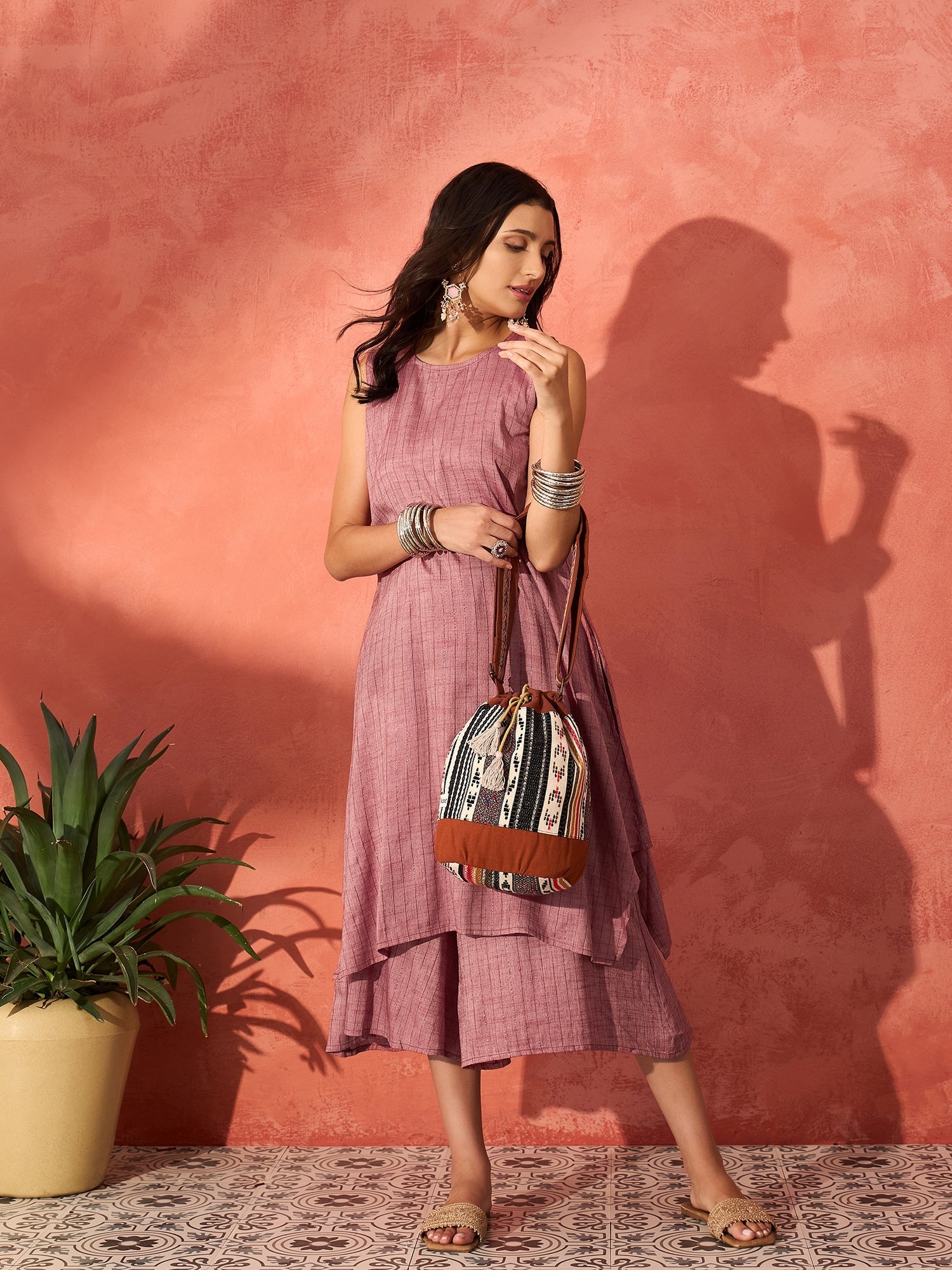 InWeave Wine Lurex Short Palazzo Kurta Set