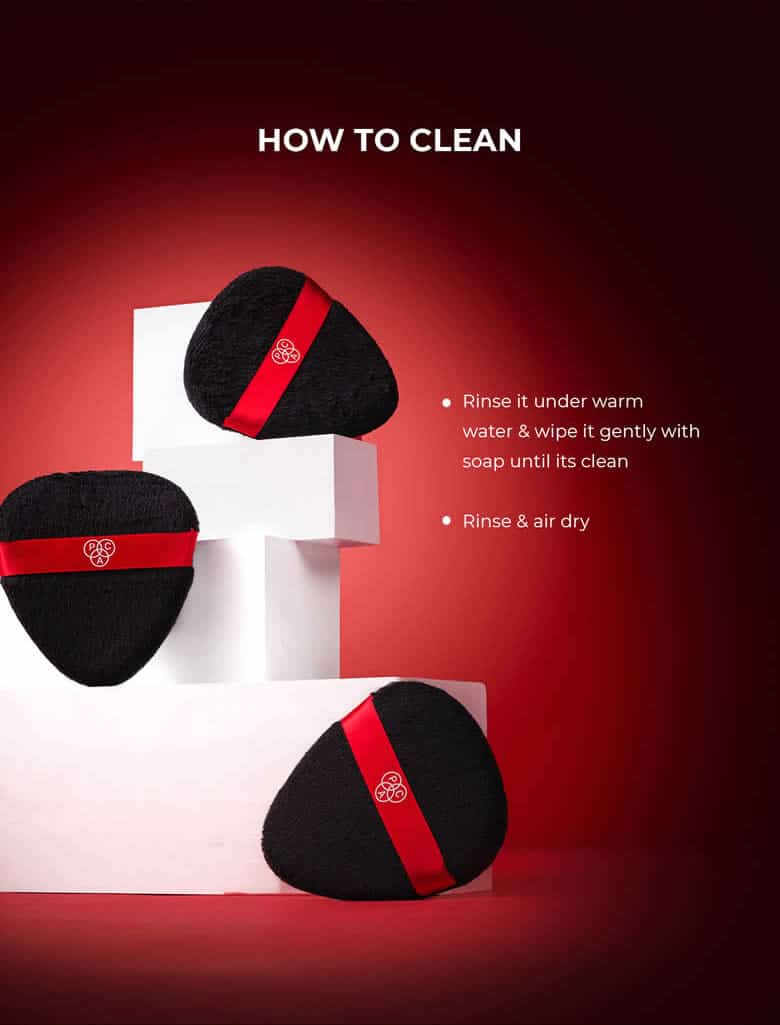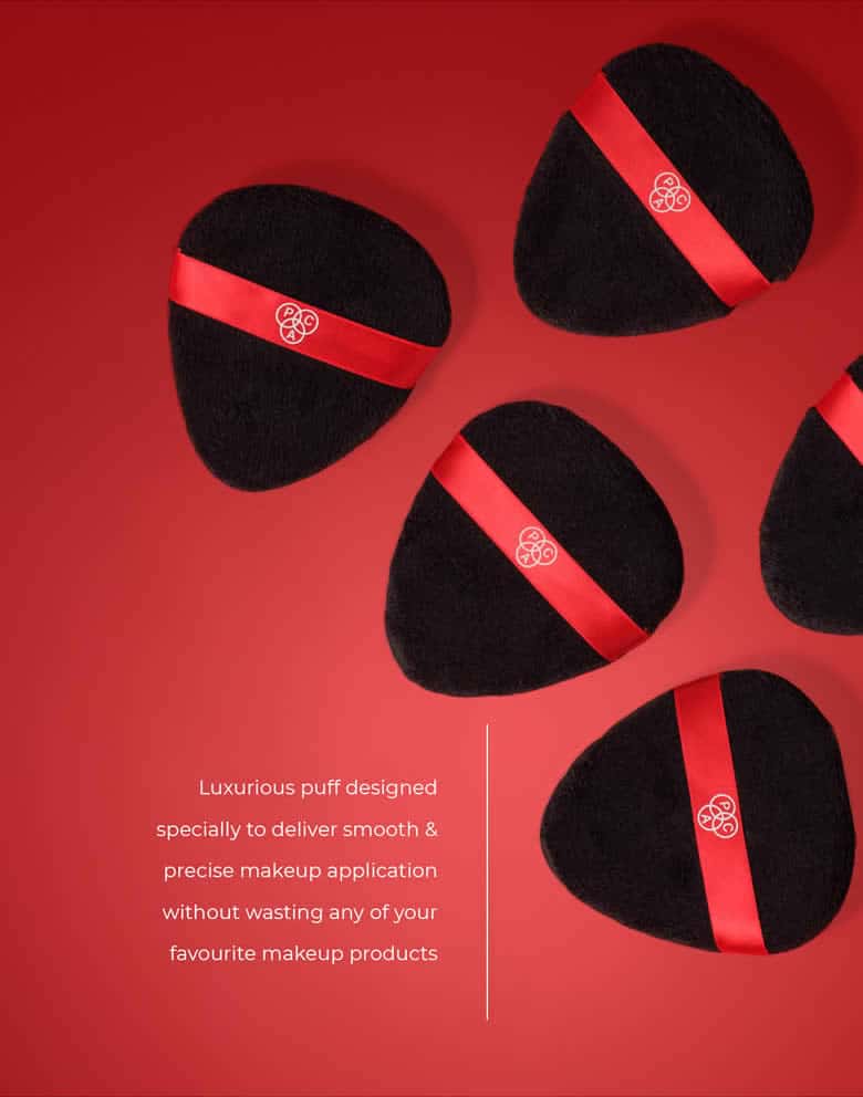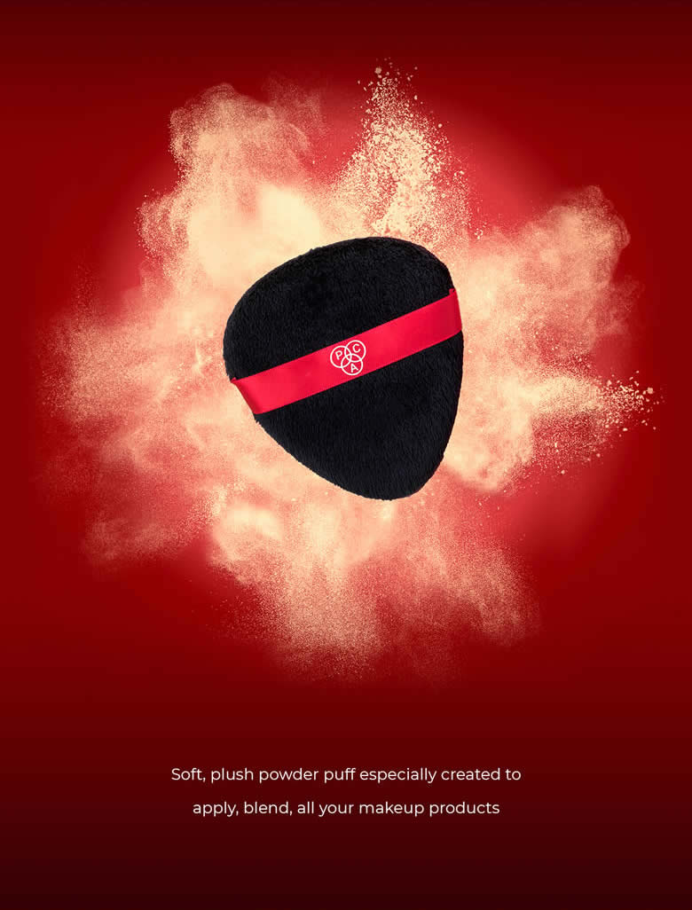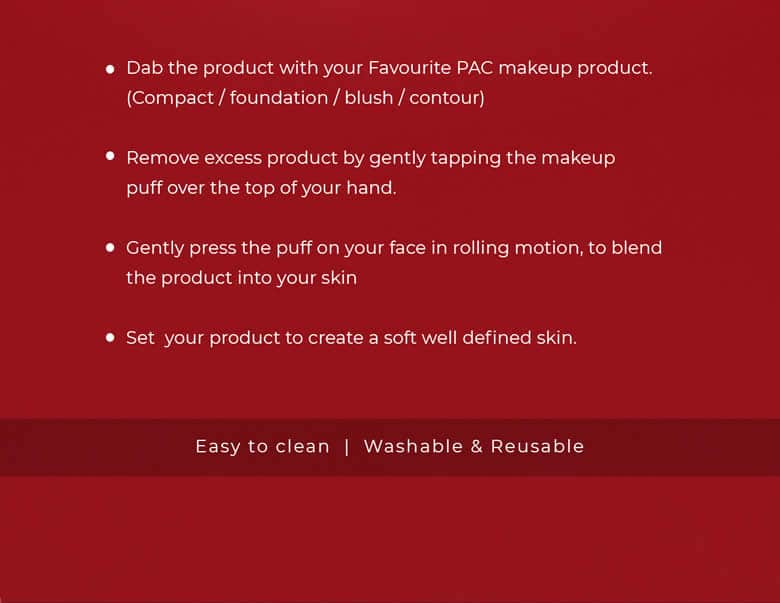 • Dip the PAC Power Puff in powder and gently spread it across the face evenly.